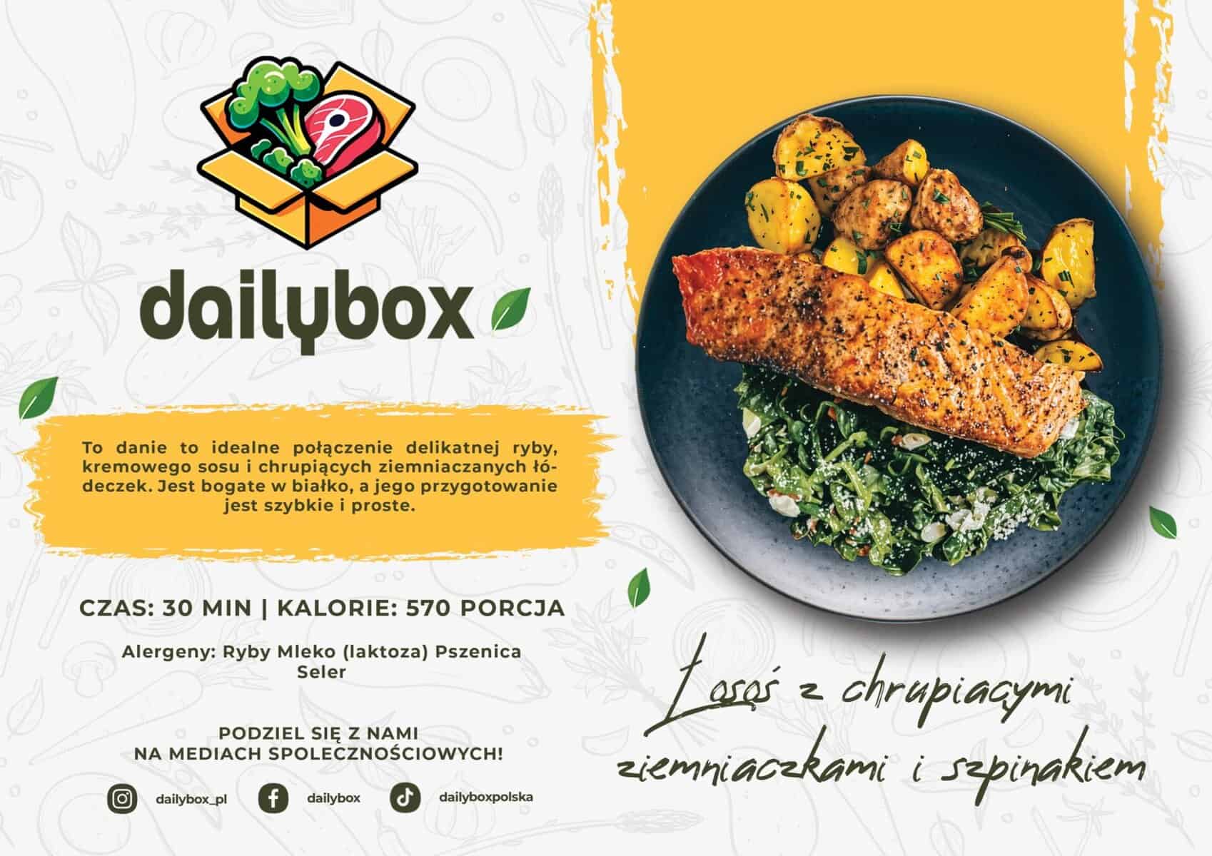 Łosoś z chrupiącymi ziemniaczkami i szpinakiem