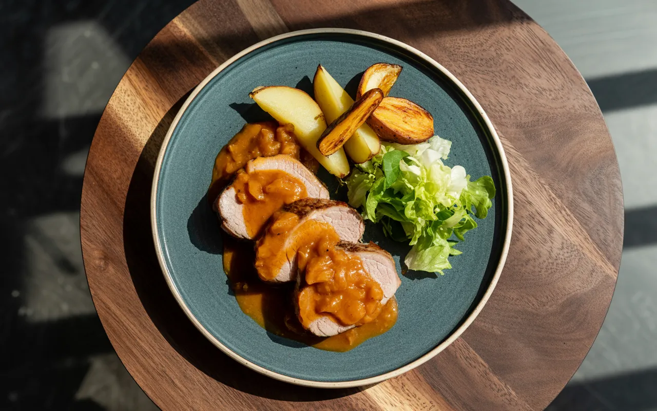 Kolorowe i aromatyczne danie inspirowane kuchnią meksykańską. Ryż, chrupiąca salsa kukurydziana, delikatne kawałki dorsza oraz pikantny majonez chilli tworzą wyjątkową kompozycję smaków.