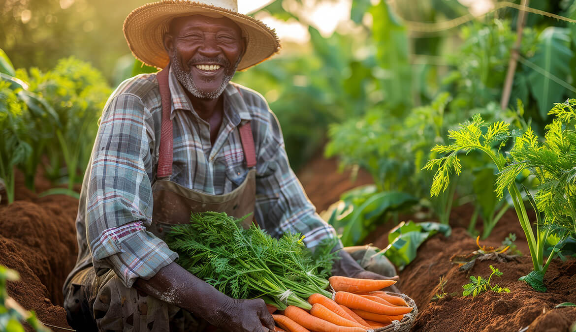 Photorealisticafrican people harvesting diverse vegetables grains